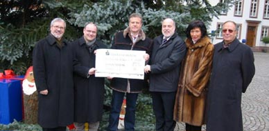30.000 Euro für die Wetzlarer Domorgel haben 2005 Vorstandsmitglieder des Dombau-Vereins den Vertretern der evangelischen und katholischen Domkirchengemeinde übergeben. Mit diesem Geld ist damals die Finanzierung der Restaurierung der heute 65 Jahre alten Domorgel gesichert worden. Die Gesamtkosten für die Wiederherstellung des von Ernst Leitz II gestifteten Musikinstrumentes beliefen sich auf 92.000 Euro. Bach-Interpret und Organist Helmut Walcha aus Frankfurt hatte die Orgel mit einem Bachkonzert am 14. Mai 1955 eingeweiht Auch Albert Schweitzer spielte hier Konzerte und rühmte das von Rudolf von Beckerath aus Hamburg erbaute Instrument. Die Orgel wurde am 31. Dezember 2005 nach erfolgter Restaurierung um 16.30 Uhr eingeweiht. Das Bild zeigt (von links) Kantor Joachim Eichhorn, Organist Horst Christill, Manfred Thielmann Vorsitzender des Wetzlarer Dombau-Vereins, Bezirkdekan Peter Kollas, Geschäftsführerin Ruth Viehmann und Schatzmeister Rolf Ketzer. (Foto: Klotz)
